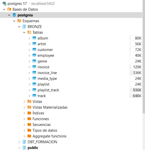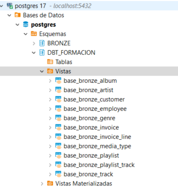 - Esto se crea porque cada fichero .sql qué tengamos en el proyecto DBT, al ejecutar dbt run se crea todo en el esquema de postgres
