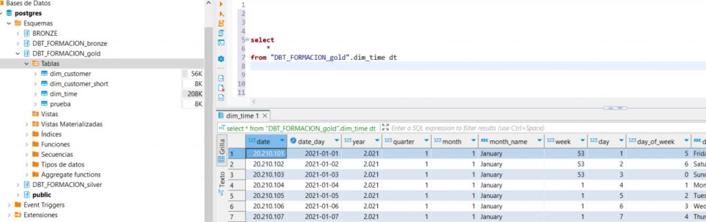 En nuestro proyecto, esta dimensión se construirá de manera incremental, agregando únicamente los nuevos días que no existan en la tabla.