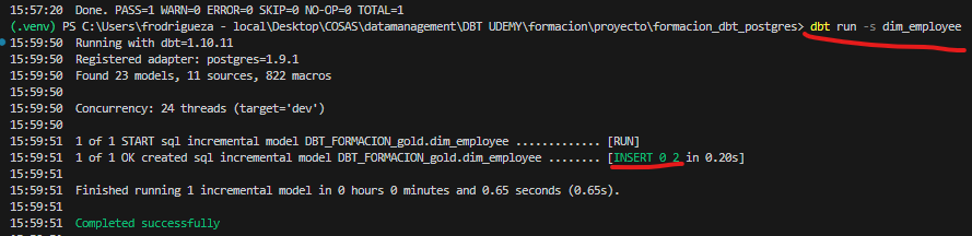 dbt run -m dim_employee