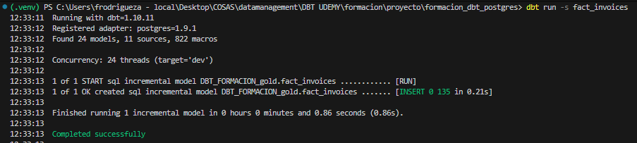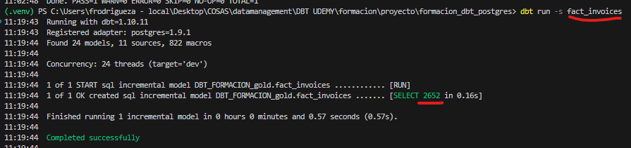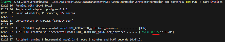 dbt run -m fact_invoices
