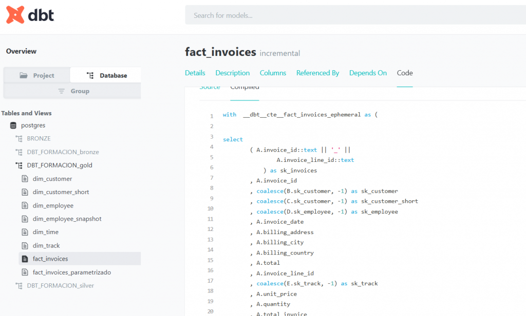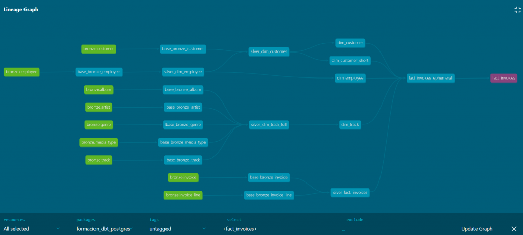- El linaje visual de la tabla fact_invoices