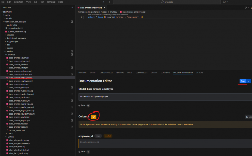 Uso de Copilot para acelerar la documentación en DBT