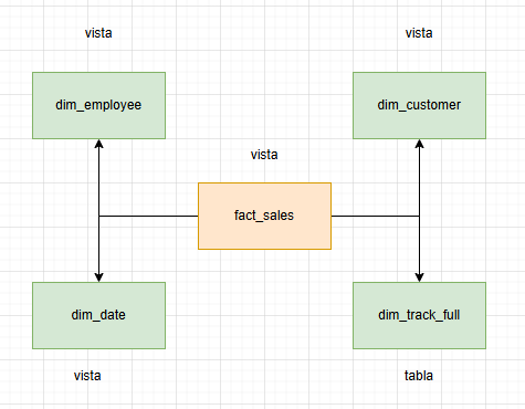 - Excepción: la dimensión track_full será una tabla persistida, dado que contiene un volumen mayor de datos y se consultará con frecuencia, mejorando el rendimiento.